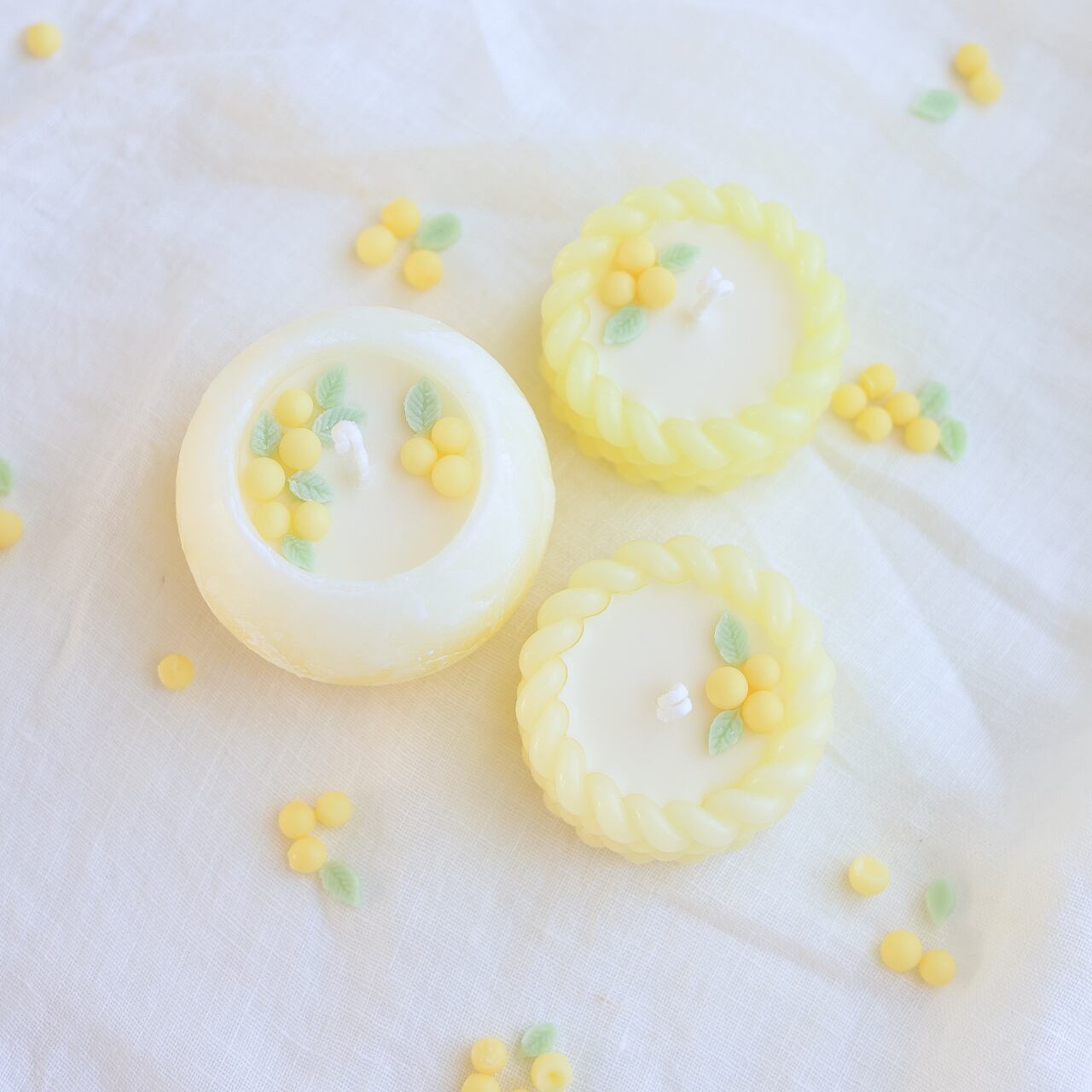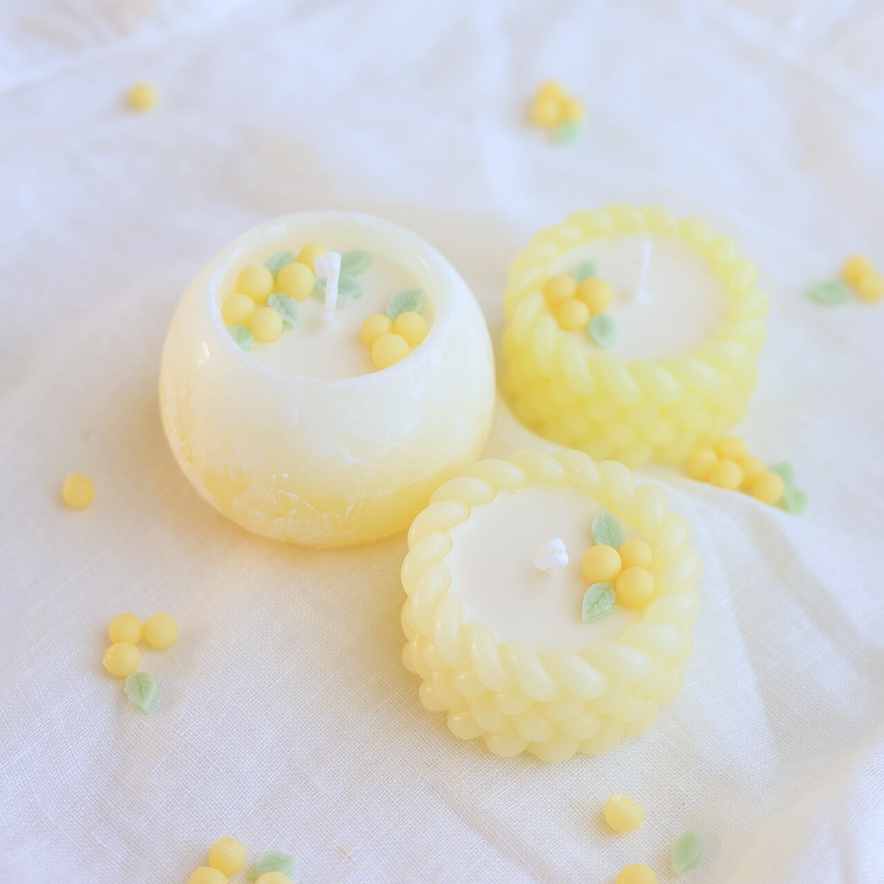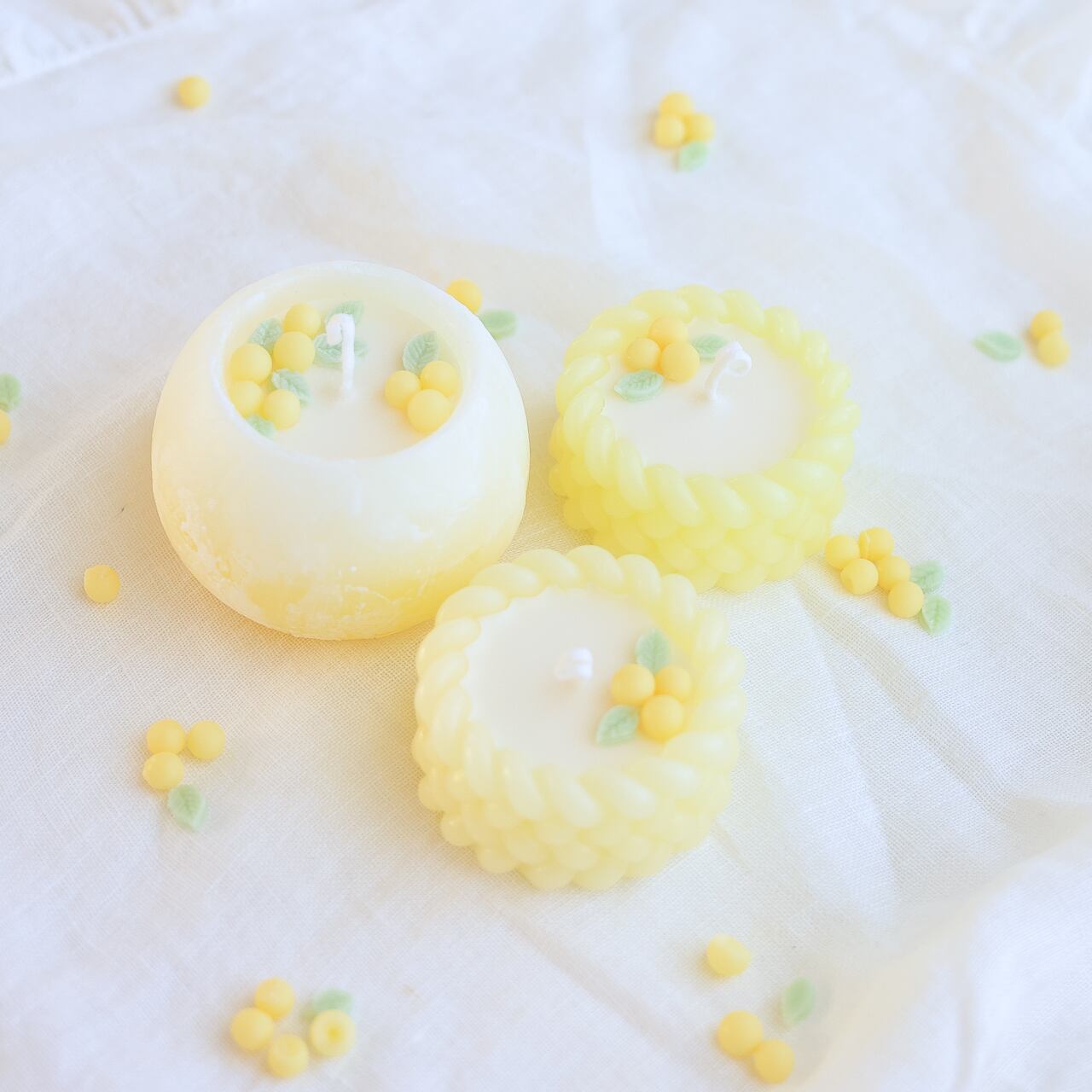 優しい黄色のキャンドルは見ているだけでも可愛らしいく春におすすめのキャンドルです。