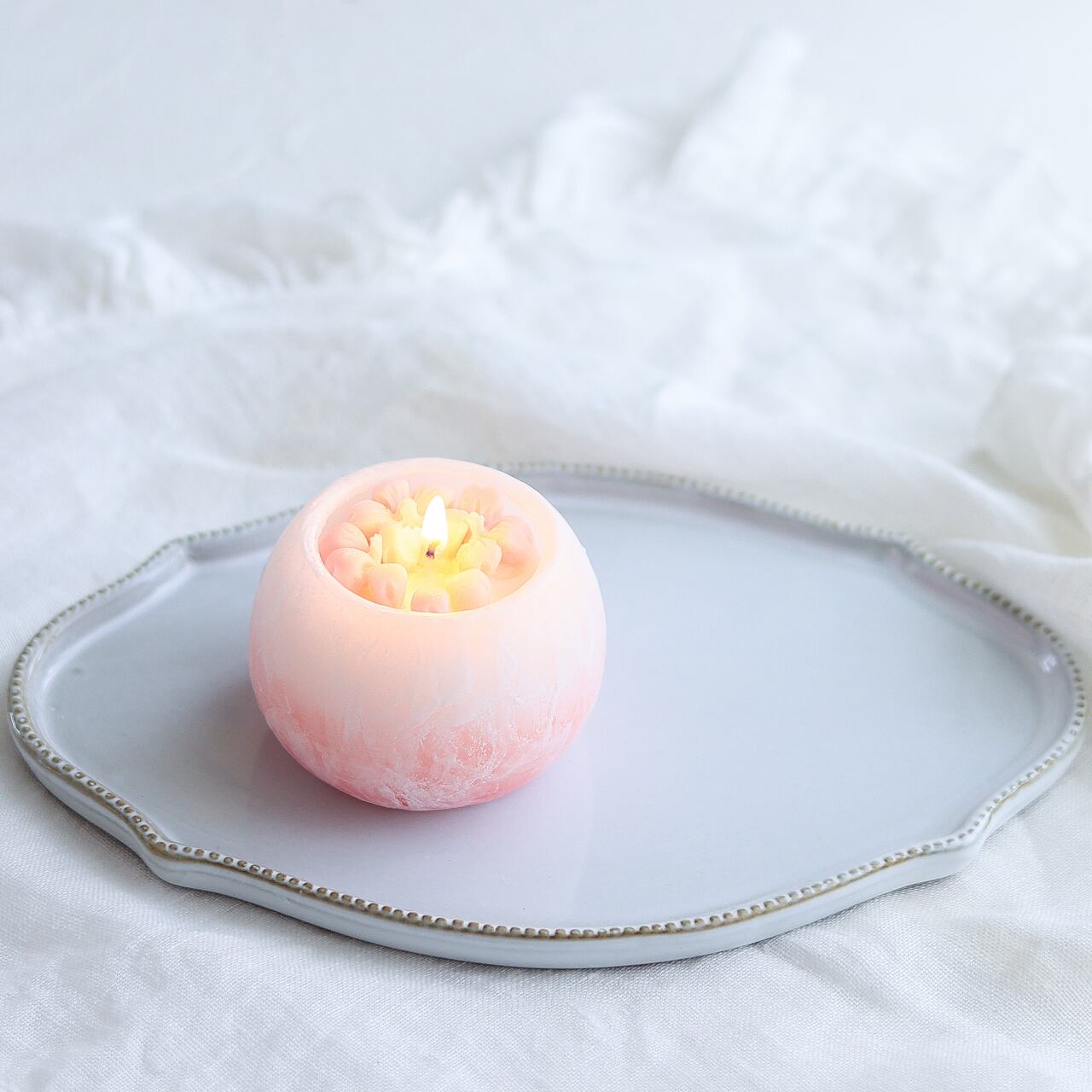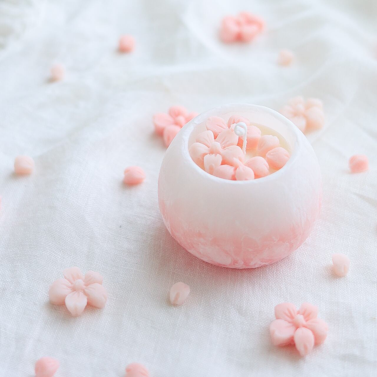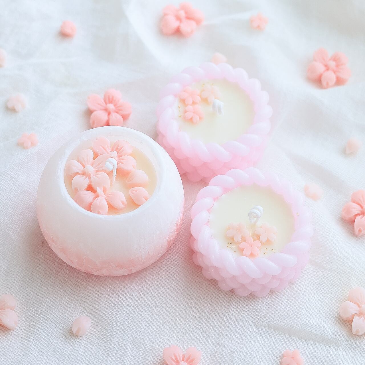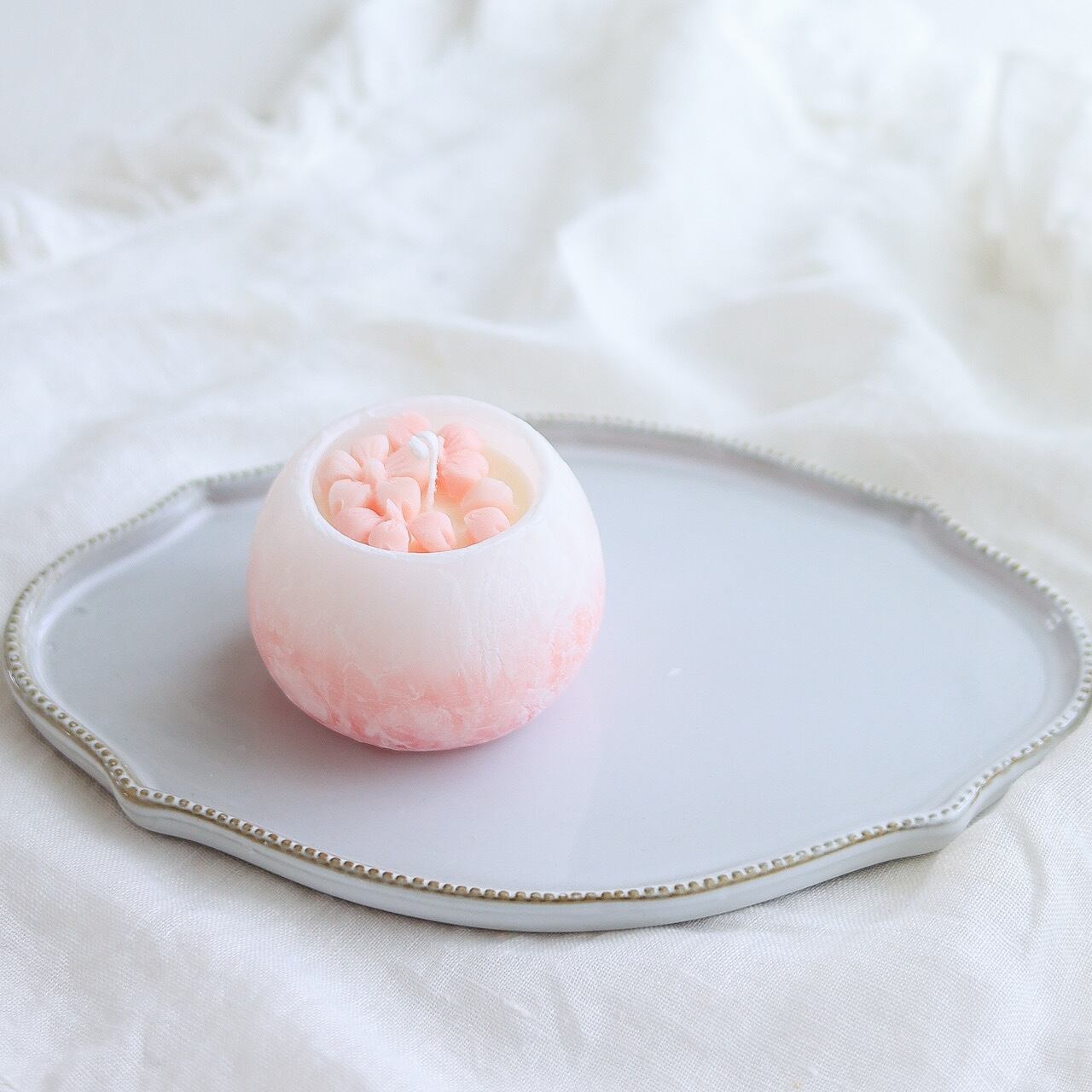 淡くやさしいピンク色のキャンドルは見ているだけでも可愛らしいく春におすすめのキャンドルです。