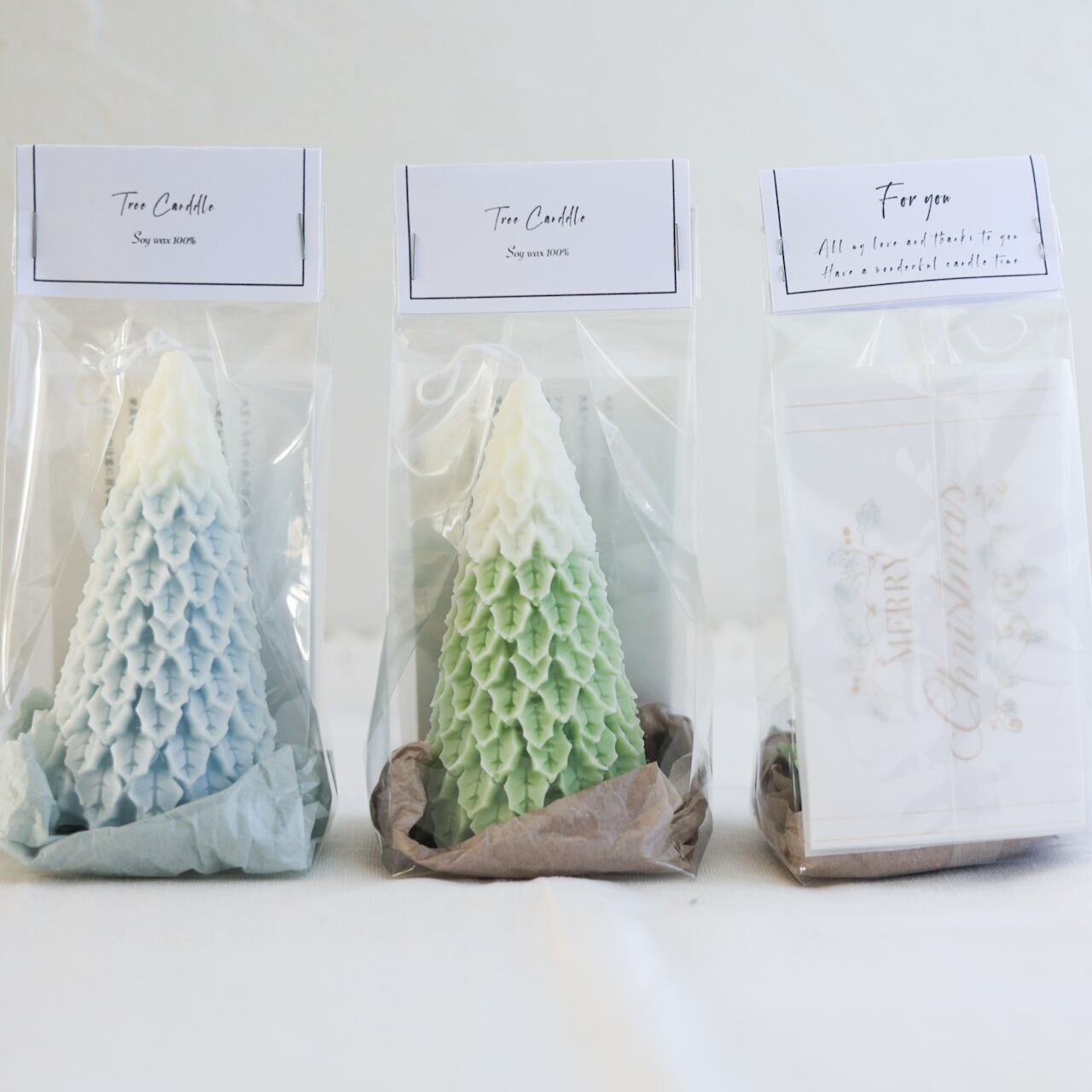 灯しても綺麗ですが、クリーミーなお色のソイワックスはインテリアとしてクリスマスのディスプレイにもぴったりです。