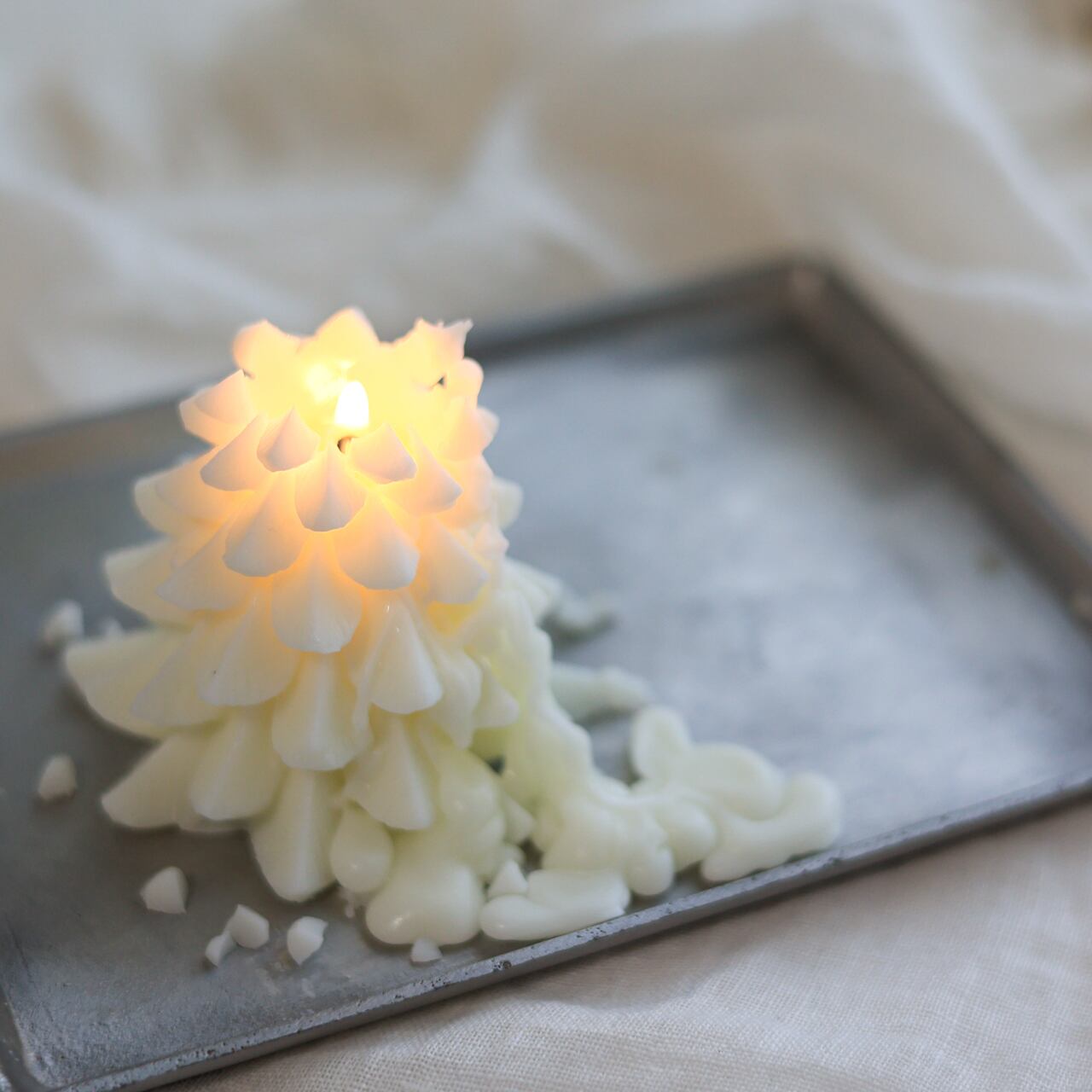 灯しても綺麗ですが、クリーミーなお色のソイワックスはインテリアとしてクリスマスのディスプレイにもぴったりです。