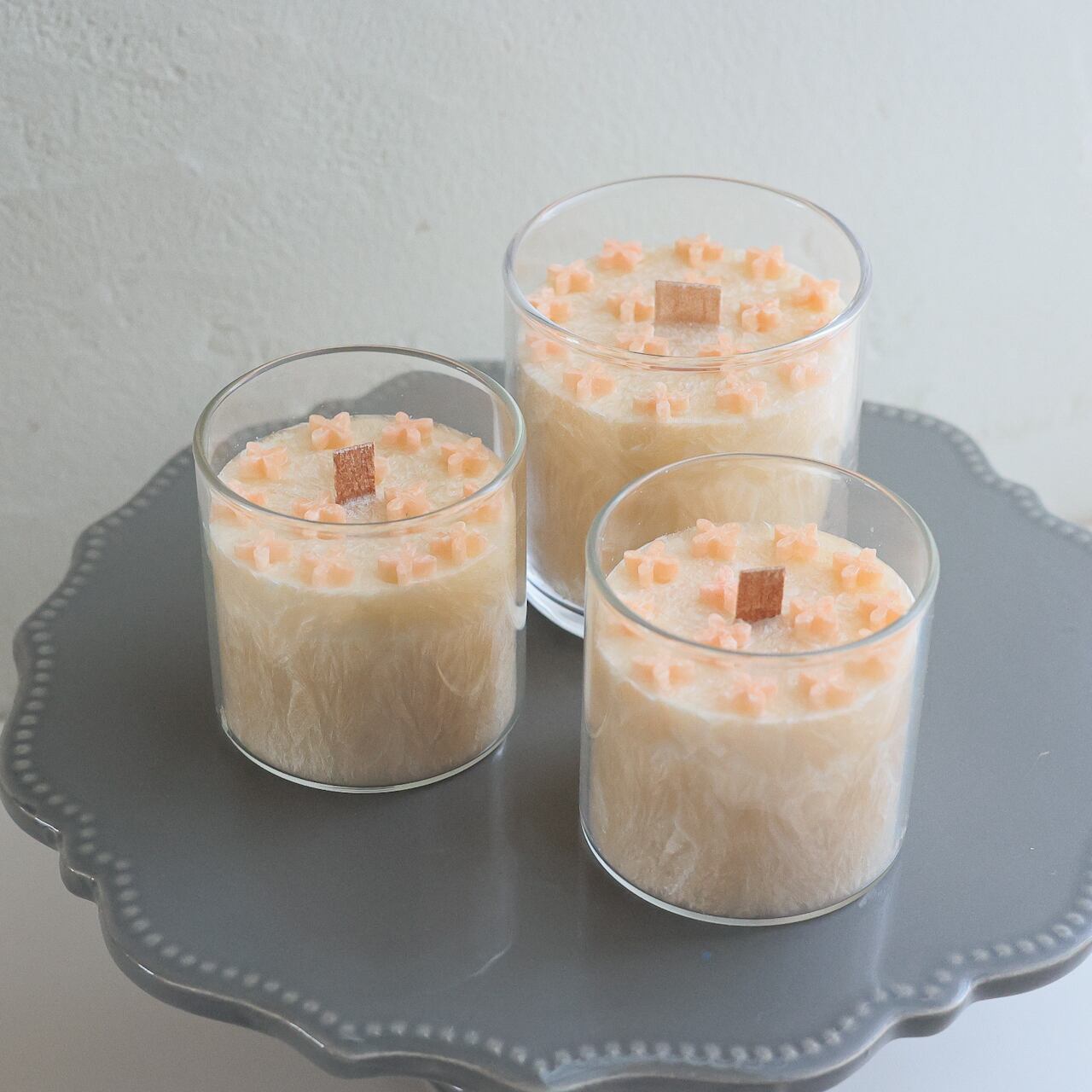 木芯とパームワックスを使用したオスマンサス&フィグの香りのアロマキャンドルです。
