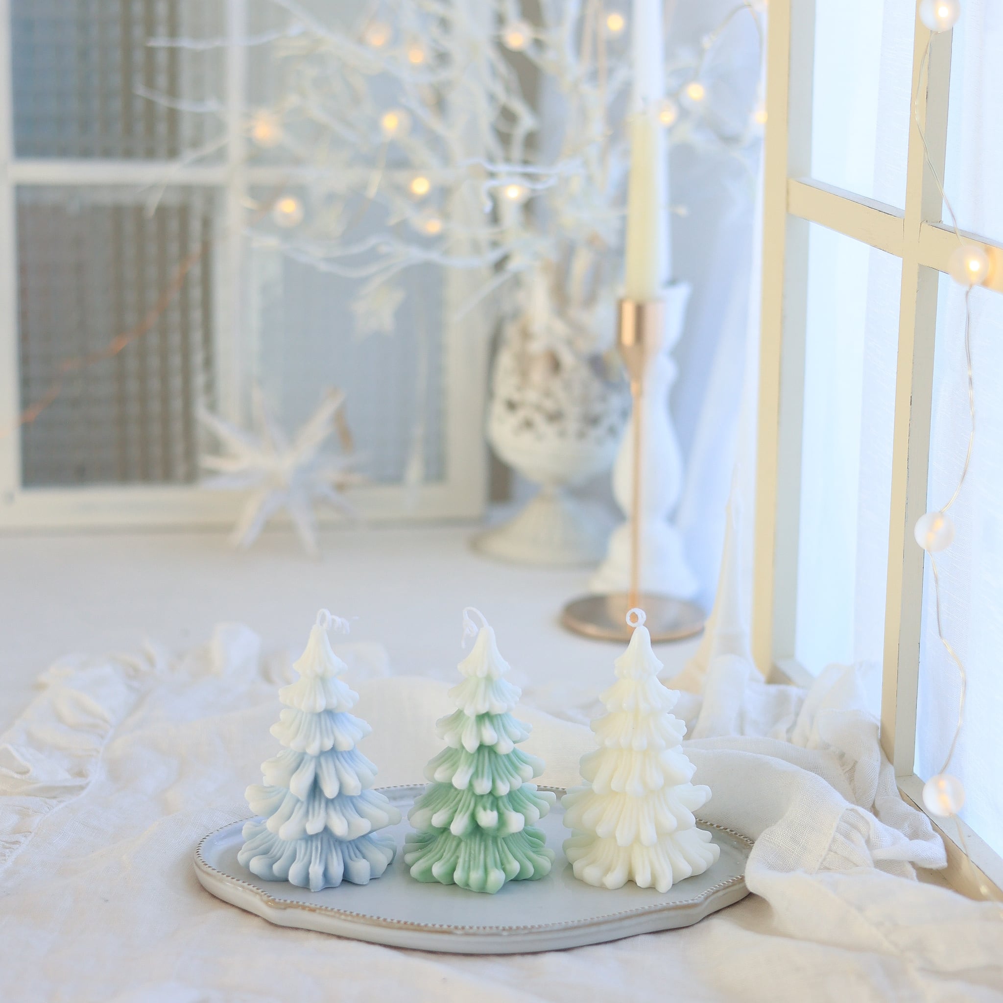 ツリーのカラーはブルー・グリーン・ホワイトの3色。