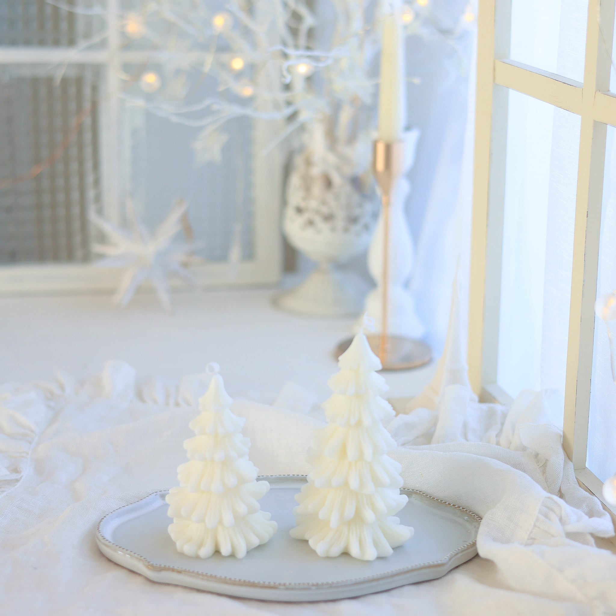 灯しても綺麗ですが、クリーミーなお色のソイワックスはインテリアとしてクリスマスのディスプレイにもぴったりです。